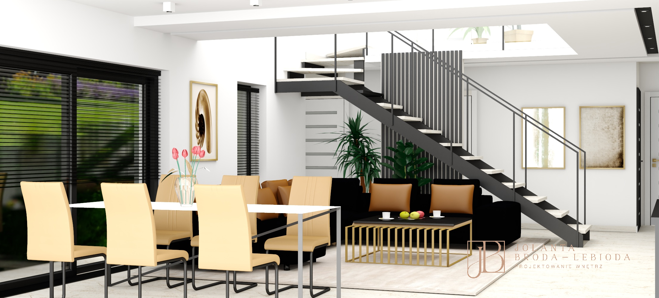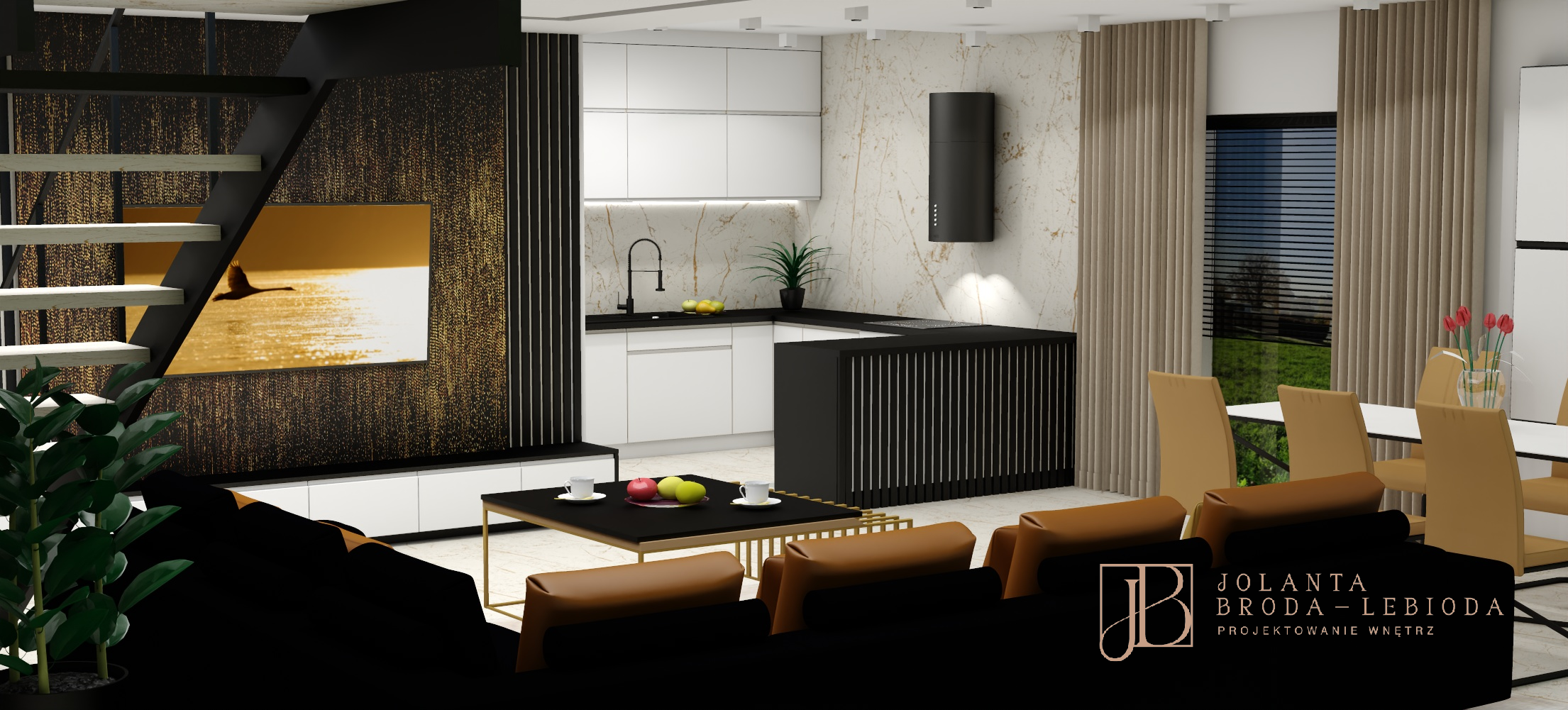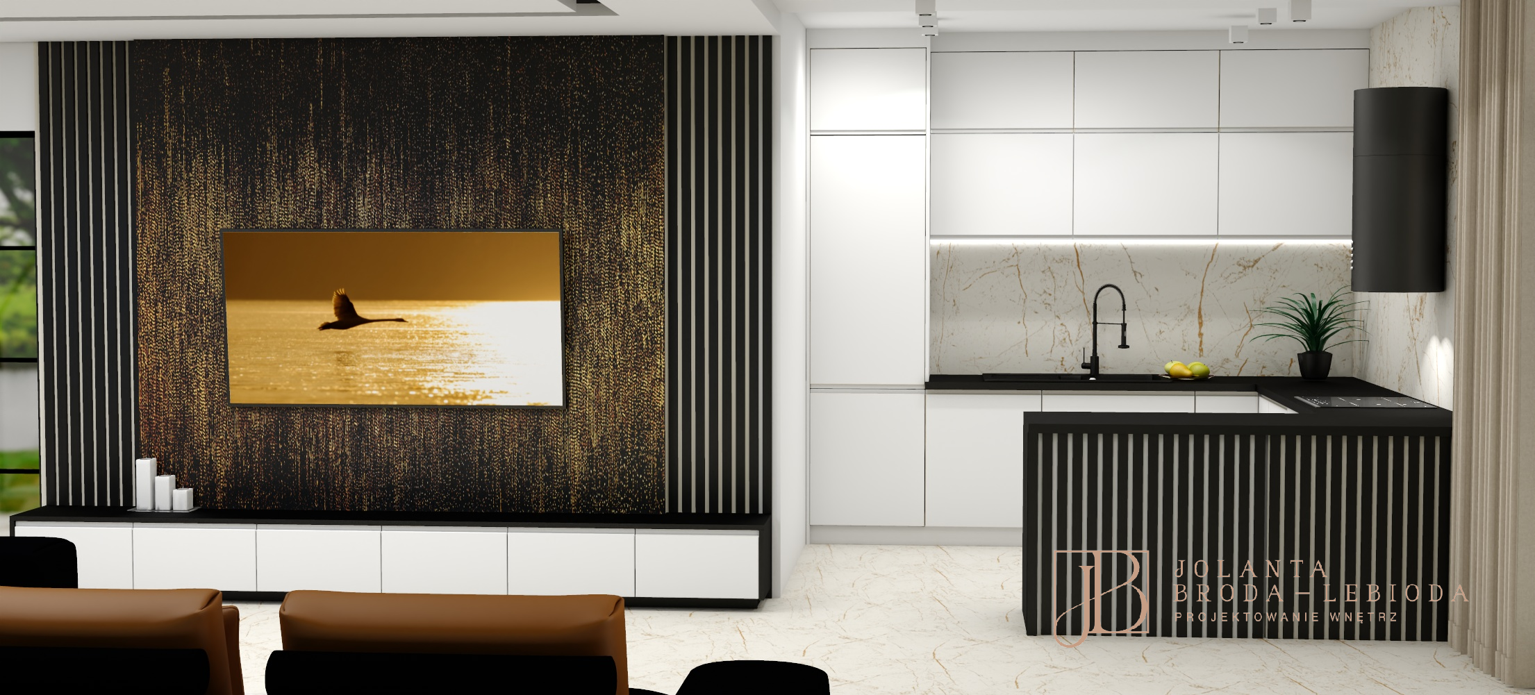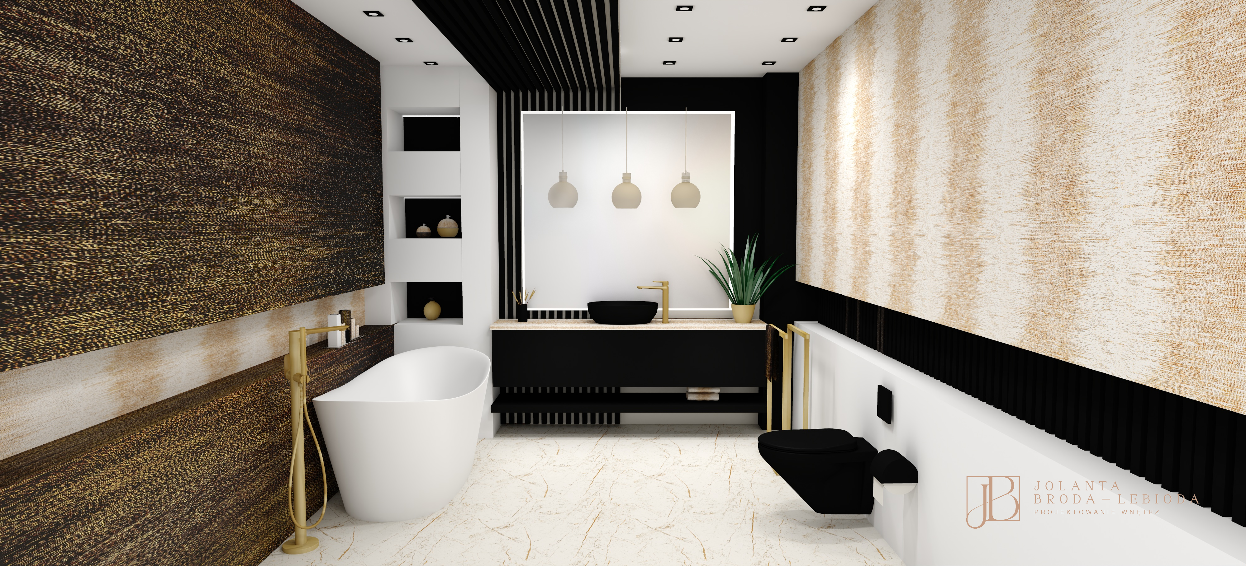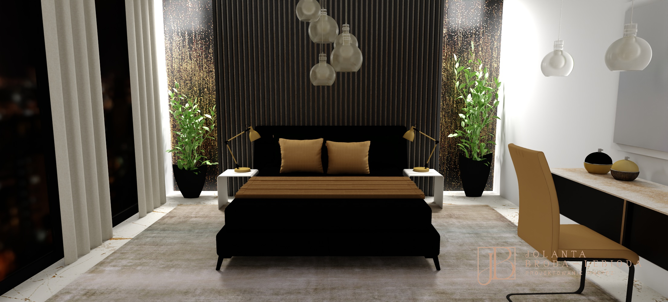 PROJEKT WNĘTRZA Z LAMELAMI W STYLU GLAMOUR